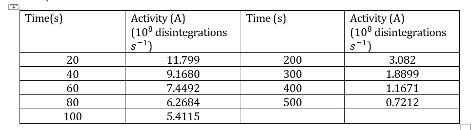 chemistry decay table