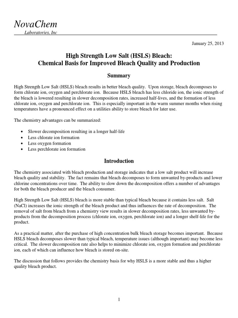 sodium hypochlorite bleach swimming pools cleaning products compound interest