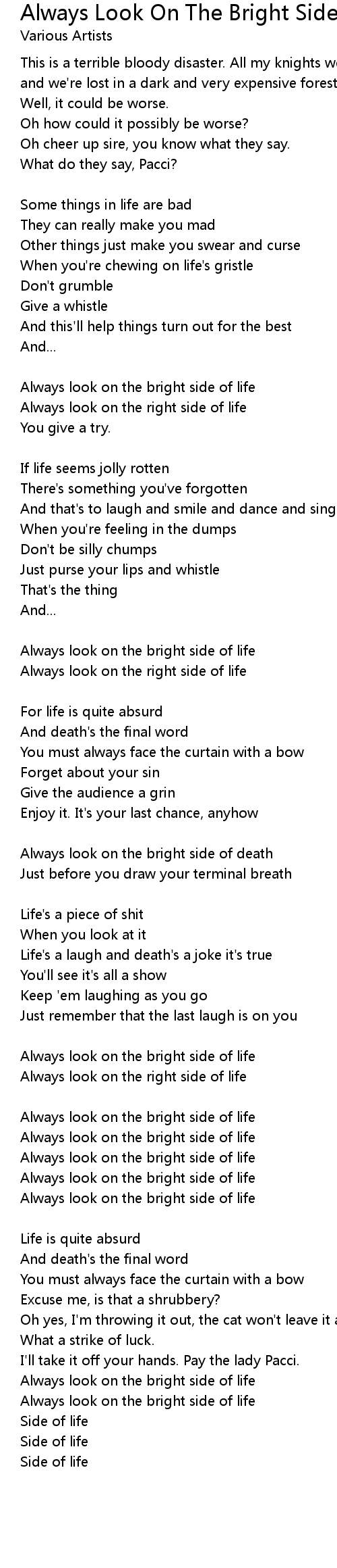 novelty song always look on the bright side of life monty python lyrics