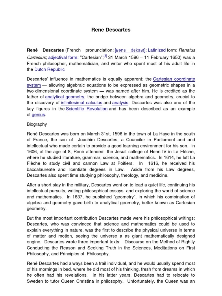 the life and works of rene descartes