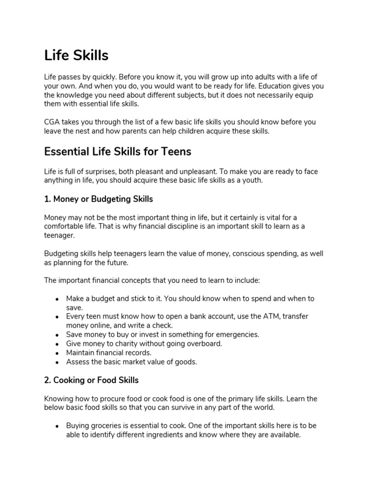 life skills list for teenager