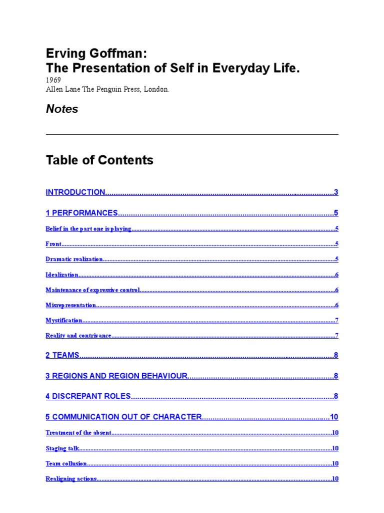 erving goffman the presentation of self