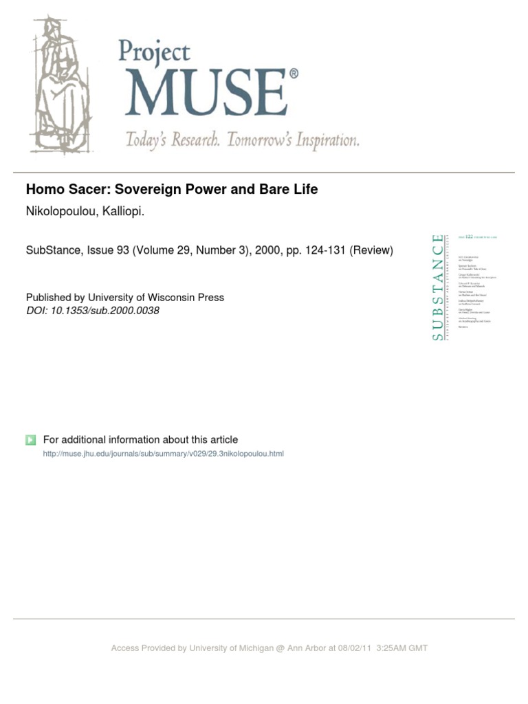 Sovereign power and bare life. Duke university press 2007. Giorgio agamben homo sacer. Foucault s work draws our attention to the fact that in an age characterized by mechanisms of exclusion of those who threaten the human race and thus have to be annihilated war not sovereignty is political strategy.