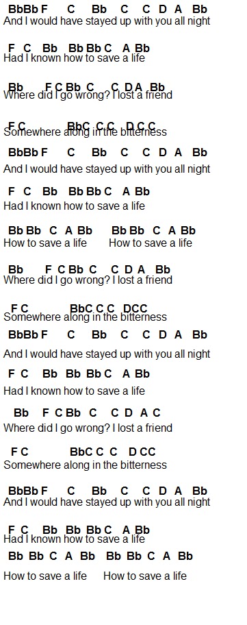 how to save a life chords piano