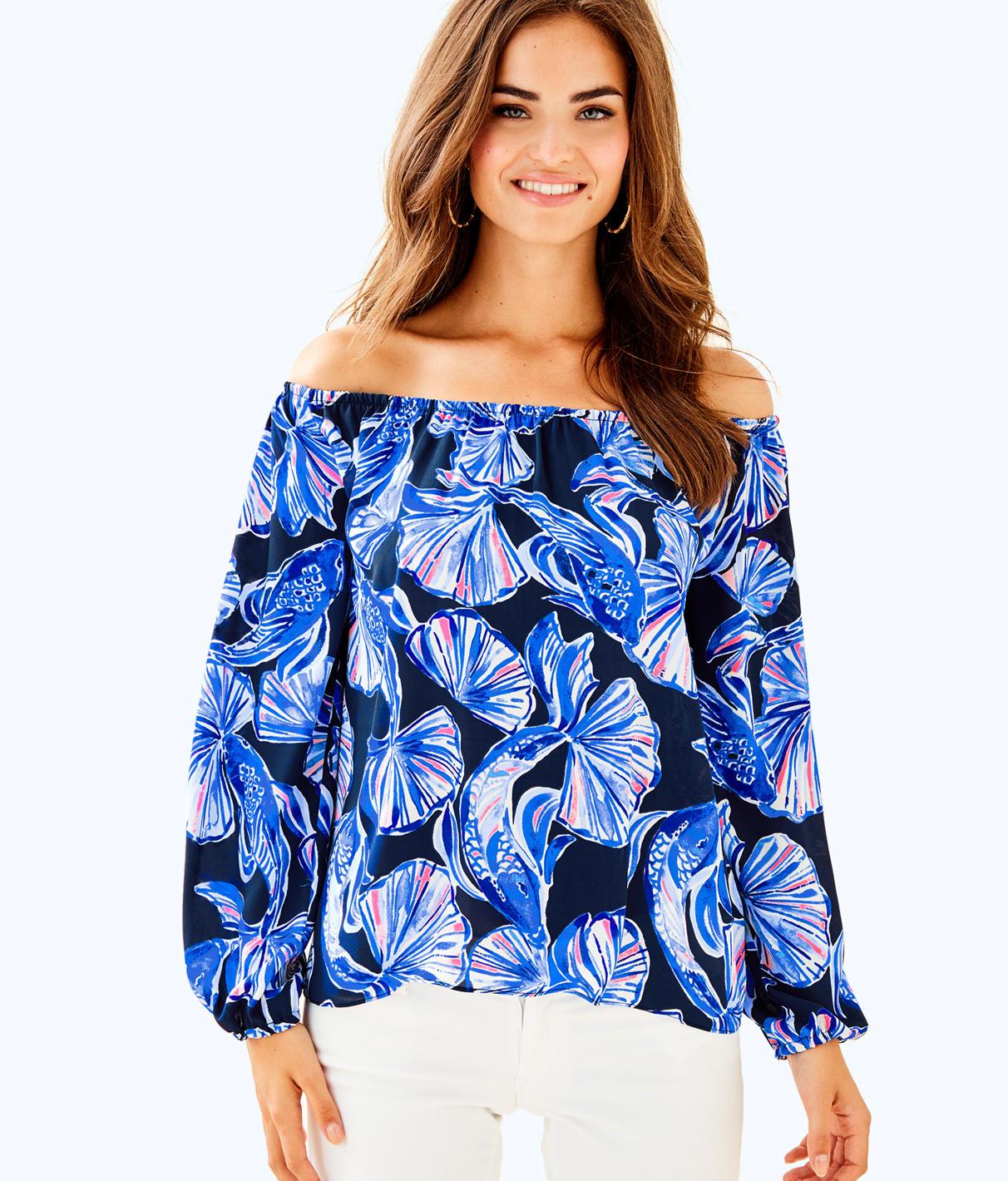 lilly pulitzer women s upf 50 booker popover in reel life navy xs