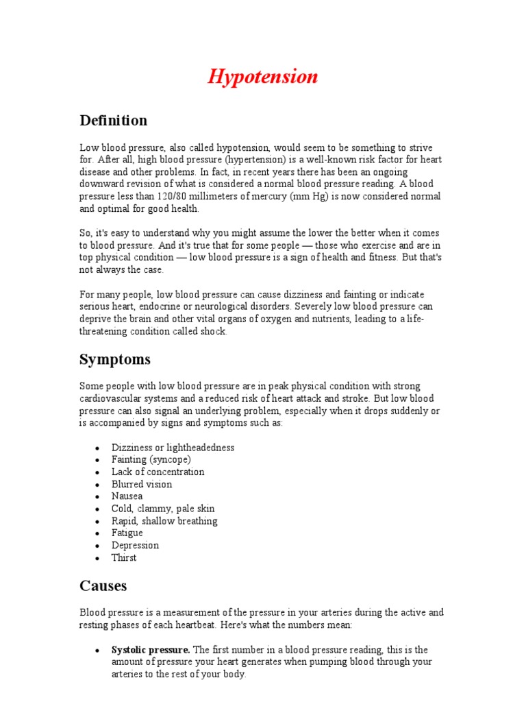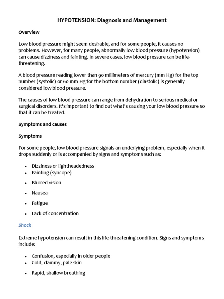 hypotension causes symptoms and treatment