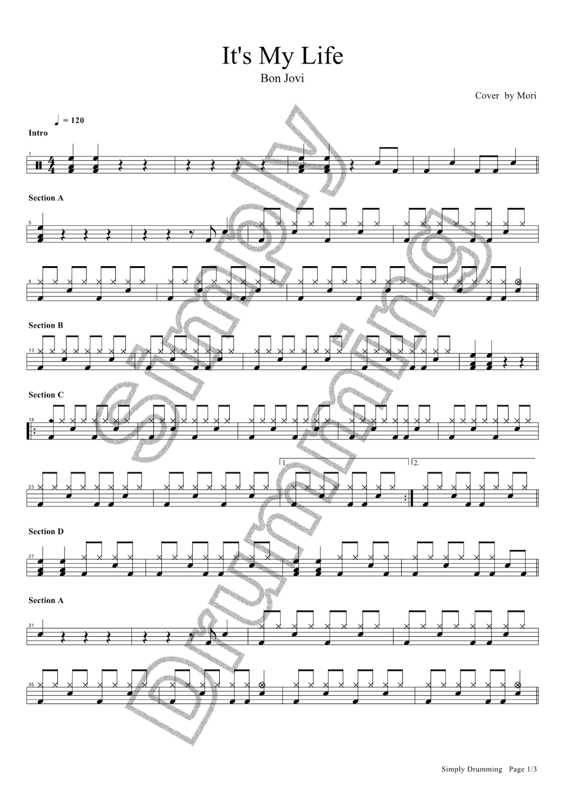 it s my life sheet music bon jovi drums transcription