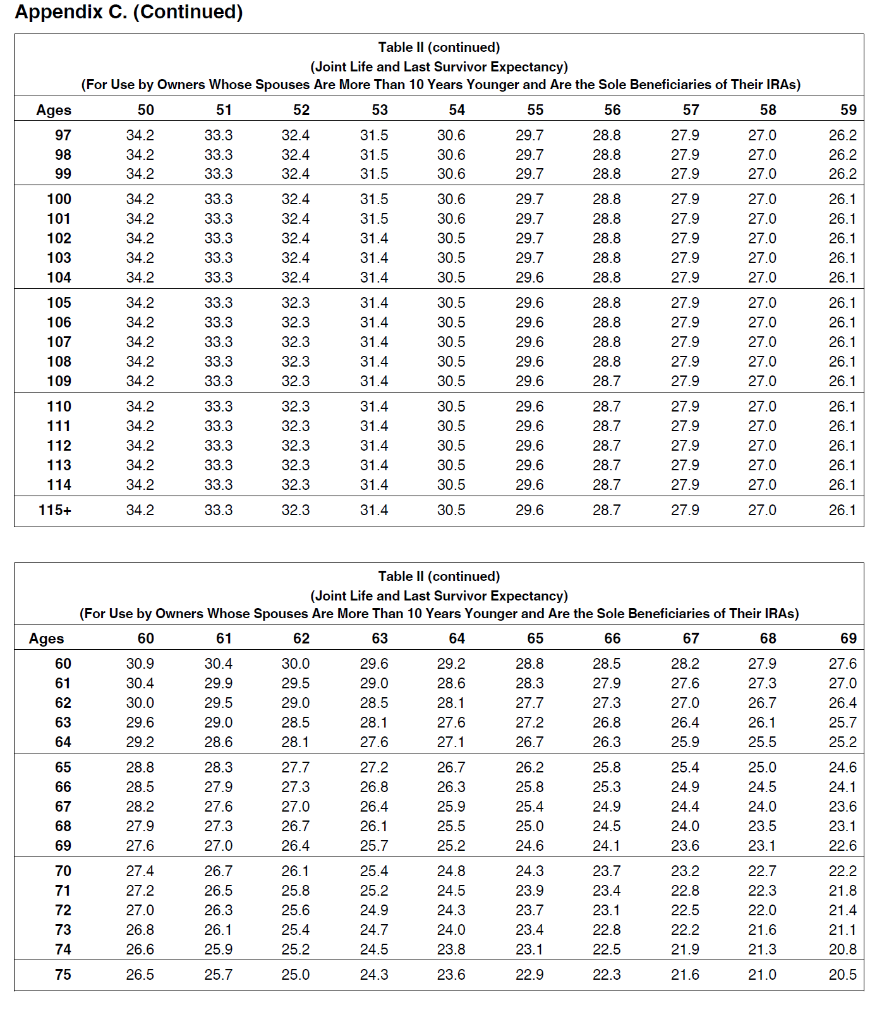 life expectancy tables for rmds