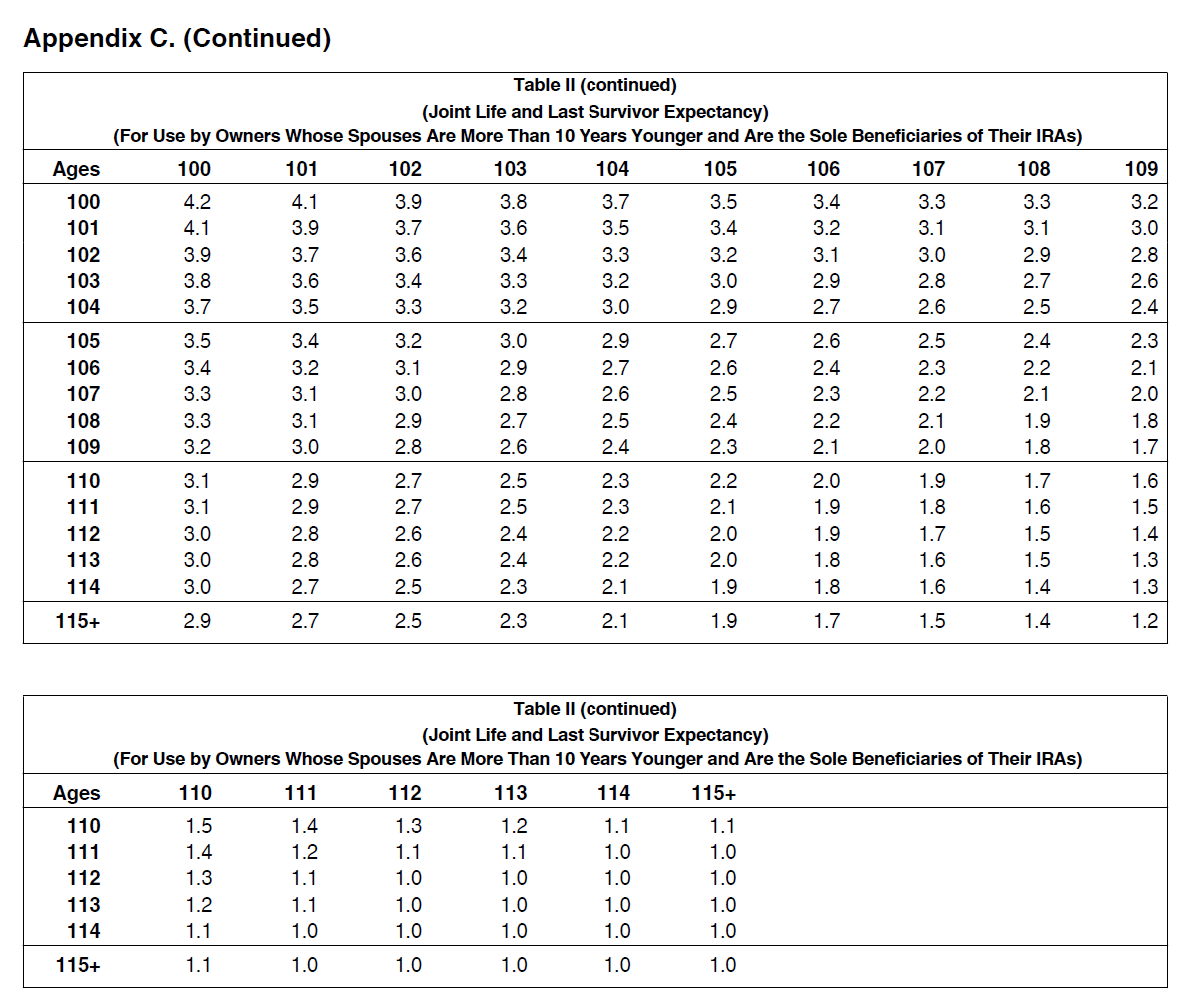 new rmd tables for 2020
