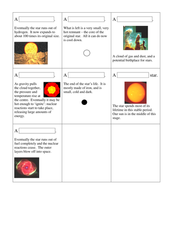 life cycle of a star worksheet