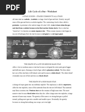 lifecycle of a star activities worksheet