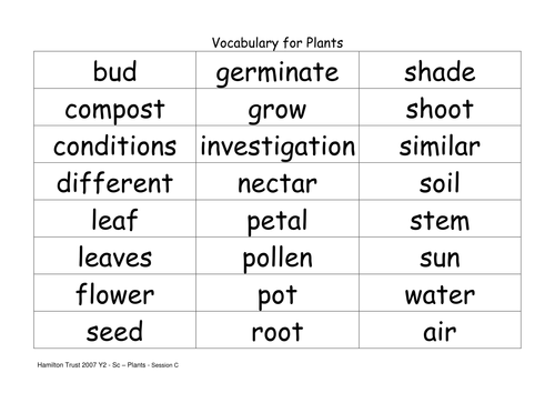 plant life cycle vocabulary cards by