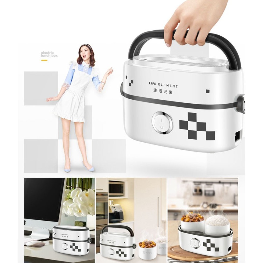life element electric rice cooker 1 5l thermal insulation lunch box portable steam heating double stainless steel inner pots