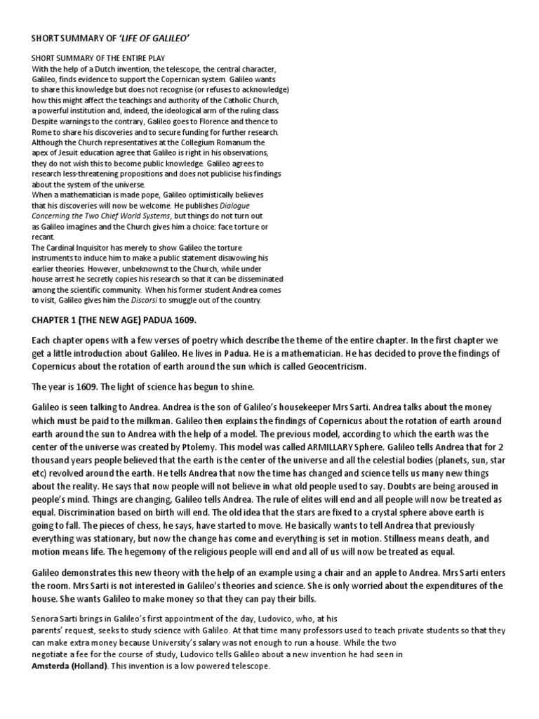life of galileo chapter summaries