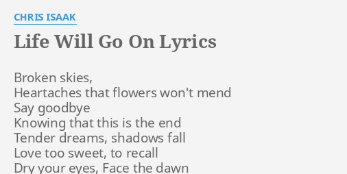 love song lyrics for life will go on chris isaak with chords