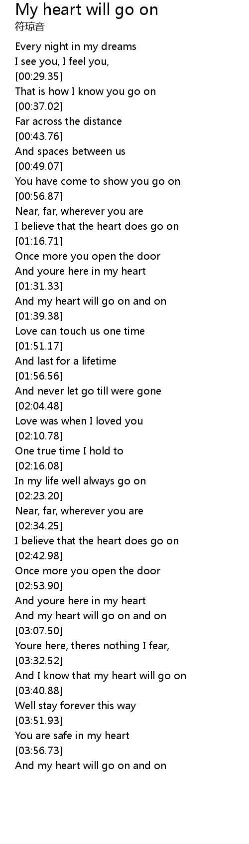 song lyrics with guitar chords for life will go on