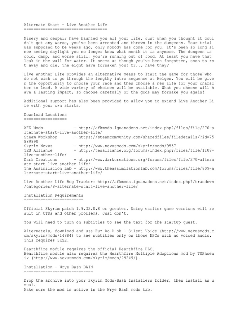 skyrim live another life alternate start live another life the elder scrolls mods wiki fandom