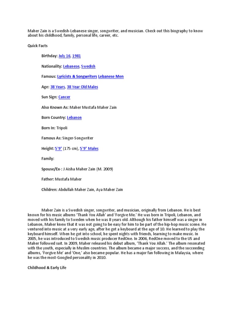 Trablusşam lübnan kökenli isveçli müslüman bir r b şarkıcısı söz yazarı ve müzik yapımcısıdır. Guide me all the way maher zain download. Wherever you go. Thought you were on my side.