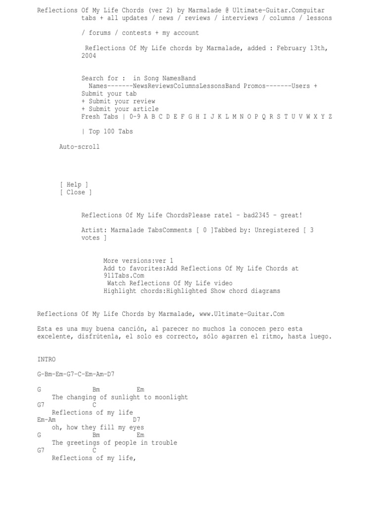 reflections of my life lyrics marmalade elyrics net