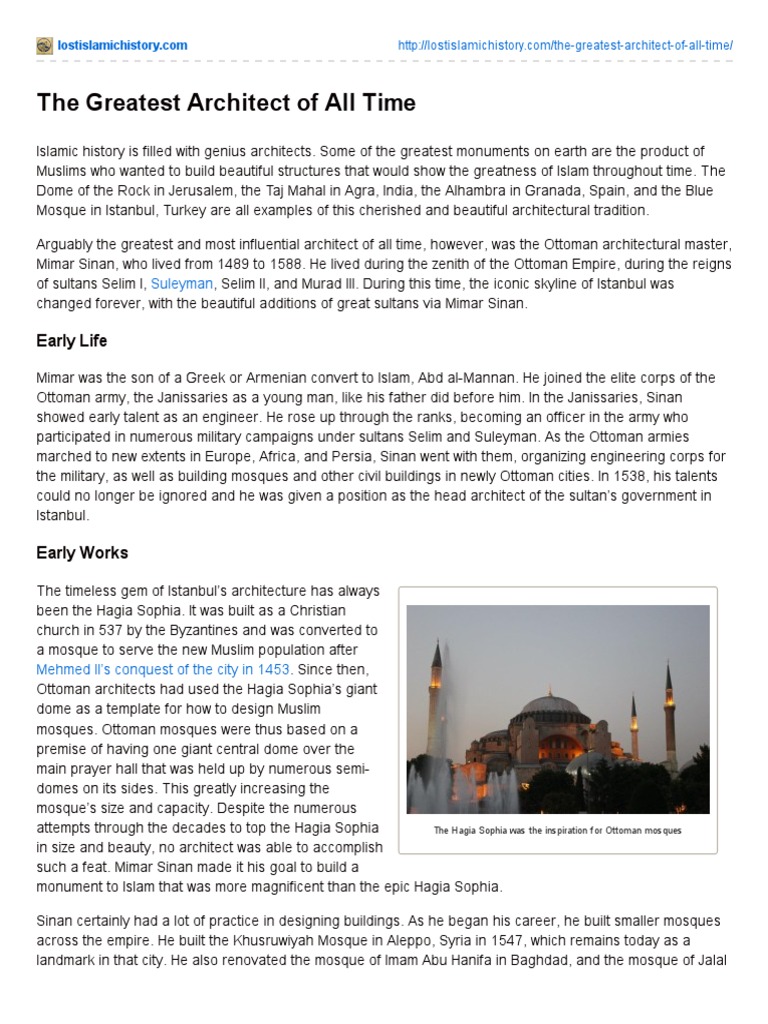 1490 ağırnaz turkey died july 17 1588 constantinople now istanbul most celebrated of all ottoman architects whose ideas perfected in the construction of mosques and other buildings served as the basic themes for virtually all later turkish religious and civic.