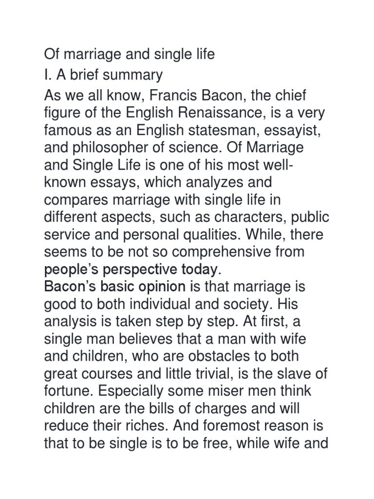 bacon essays of marriage and single life summary